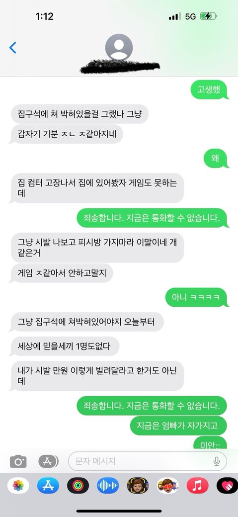 제가 제작년에 제가 제지인하고 같이게임하면서 저는 제돈으로 캐쉬아이템을 뽑았습니다 그래서 말좀 하다가 저한테 자기는 이런거 없고 내가 왜하냐 이런식으로 저한테 요구하는식으로 말하길래 어쩔수 없이 해줬으며 저랑 같은아이템 나올때까지 아이템을 제계정으로 해서 열어서 넘겨주는식으로 했습니다….또 다음년도에 같은행동 반복으로 인해서 또 제계정에 현질후 아이템을 나올때까지 까봤는데 안나왔습니다…결제기록은 제 게임계정에 있습니다 그래서 해당지인은 게임에서 제가 현찰로주고산 고가의 아이템도 저한테 요구를 하면서 안주면 게임접겠다라는식으로 나와서 어쩔수 없이줬습니다 제가 그래서 게임에서 요구한아이템값만 50만원이 넘는실상입니다 게임내 패키지 , 고가의 아이템 등등포함해서 현실돈 54만원정도 갚으라고 한상태입니다..근데 자기는 돈갚아야하는걸 인정하면서도 제돈을 갚지 않고 그냥 거짓말로 돈을 갚아야 하는상황을 피하는상태이며 해당지인은 저를 차단한상태입니다 제가 그래서 그지인한테 돈언제갚을거냐 라고 물어봤을때 한 5번이상은 넘어가줬고 그이상은 안될거같아서 해당지인의 부모님에게 정중하게 연락드렸지만 저를 무시하시는상태여서 다른지인휴대폰으로도 해당 지인 부모님한테 연락해도 똑같은 답변입니다 저는 정중하게 보냈고 최대한 빨리끝낼려고 해당지인한테 개인DM으로 형 언제 줄수있냐 라는 식으로 말했습니다 그러다가 디스코드 음성통화로 3명으로 통화를 하다가 어떻게할건지 물어보다보니 해당 지인 어머니가 저한테 갑자기 야이 개XX야 니가 뭔데 우리아들을 협박하냐 이런식으로 말씀하시는겁니다 전 협박한적 1도없었습니다 해당 지인 어머니가 계속 폭언을 하자 저도 그냥 욕하진 않았고 크게 톤을 높여서 대응하다가 먼저 해당 지인과 해당 지인어머니는 도망을 갔고 저한테 개인DM으로 우리아들이 돈갚게 할테니 연락하지마라 우리아들이 못갚으면 부모인 내가 1 , 2월까진 갚겠다 하고 연락이오고 연락이 더이상 안됬고 돈도 받지 못했습니다