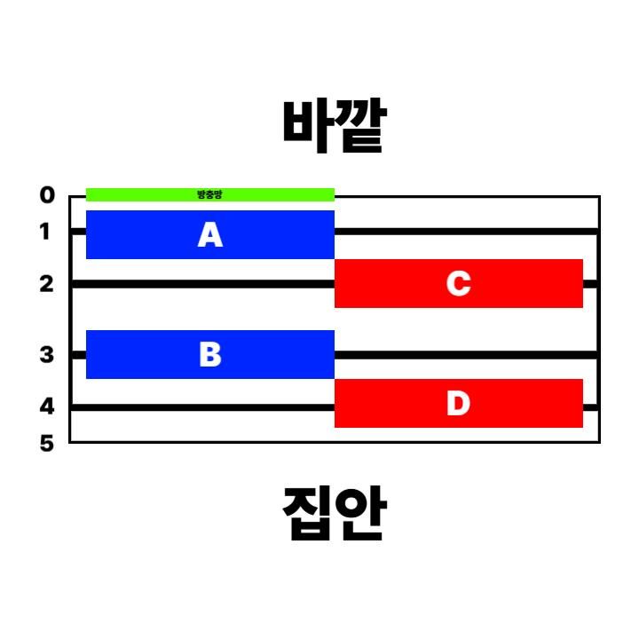 사정이 있어 C, D 쪽은 고정되어 있는 상황이라 실내쪽 + 열 수 있는 B 쪽에만 설치가 가능합니다.