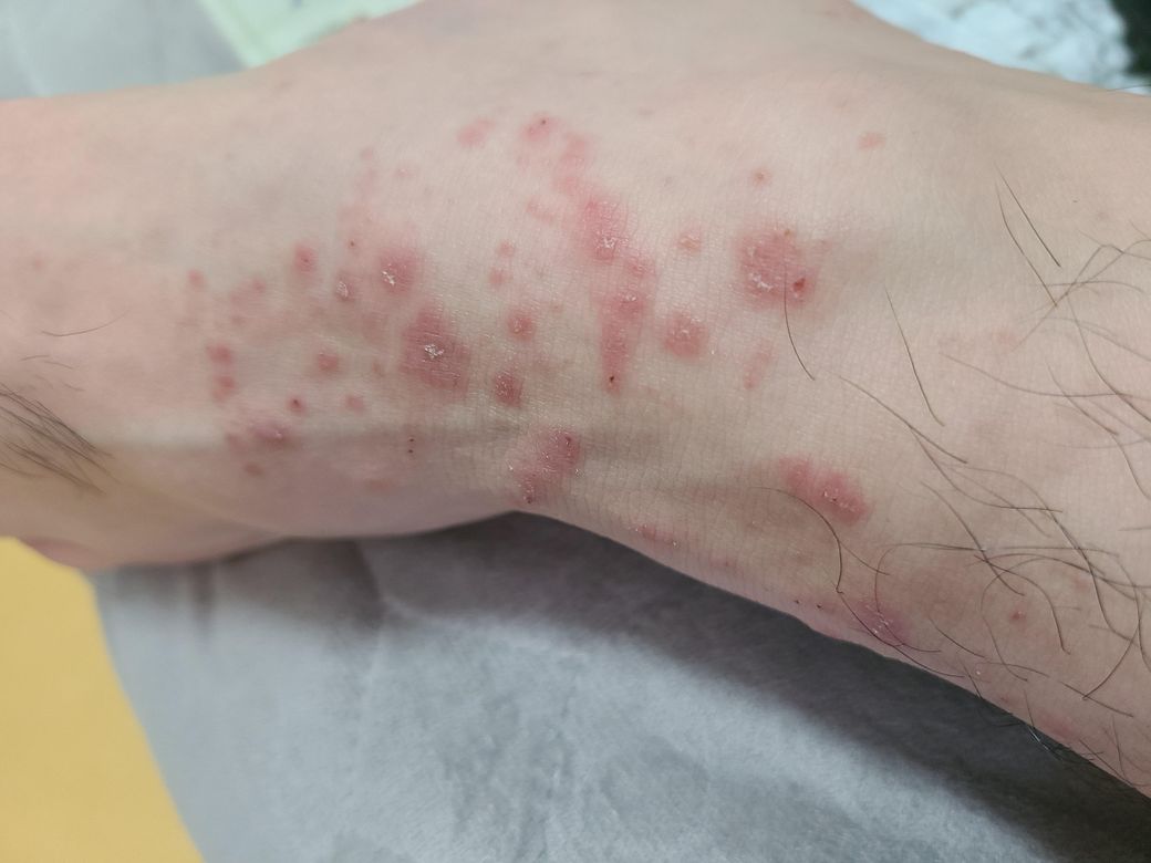 추석을 세고 난 후 발목 쪽에 조금씩 뭐가 올라 오더니 아래 사진 처럼 수포? 습진? 이 올라 왓습니다. 증상은 가지러움 증상이 있습니다. 위 증상과 치료를 받으려면 어디로 가야 하나요?