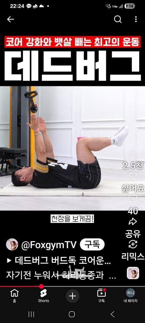 폼롤러를 척추 방향으로 세워누운 상태에서 두 손을 바닥에 대지 않고 다리를 드는 동작은 코어 안정성과 균형 능력이 많이 필요해 일반인에게는 상당히 어렵습니다.