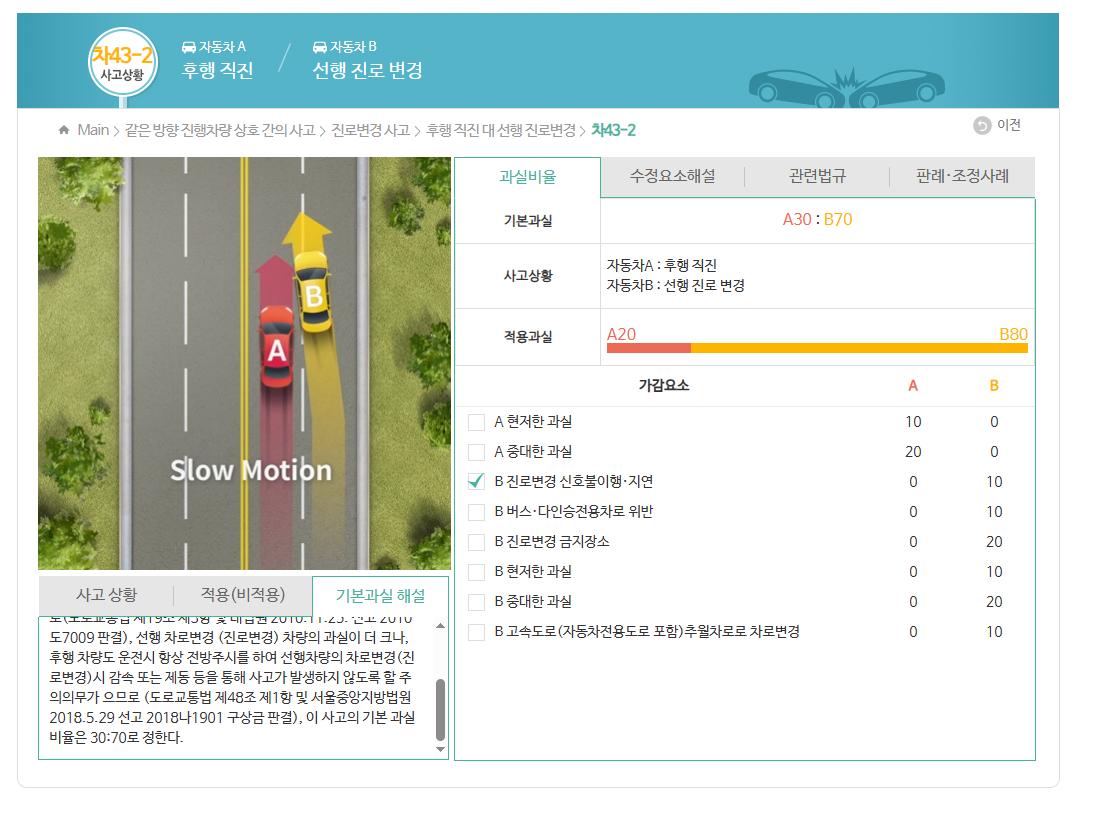 차선변경 사고의 경우 3:7 에서 시작합니다.
