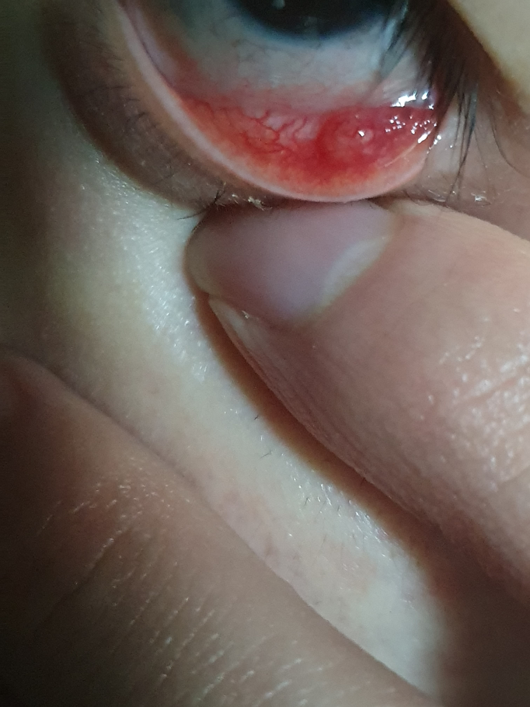 다래끼로 관찰이됩니다. 속다래끼 가능성이있어 보입니다. 가까운 안과진료를 보고 치료를 받는것을 추천드립니다.