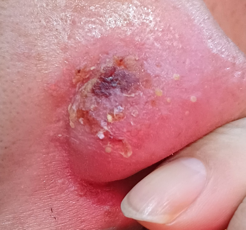 코 주변에 진물과 딱지가 생기는 증상은 여러 피부 질환 중 하나일 수 있으며, 사진으로 보아 감염의 징후를 보이고 있습니다. 모낭염이나 여드름과 같은 피부 문제에 익숙하신 체질이라고 하시면, 이는 모낭염의 일종일 가능성이 높습니다. 피부의 자극이나 건조함이 추가적인 역할을 했을 수 있습니다. 피부가 손상되거나 자극을 받으면 감염에 더 취약해질 수 있습니다.