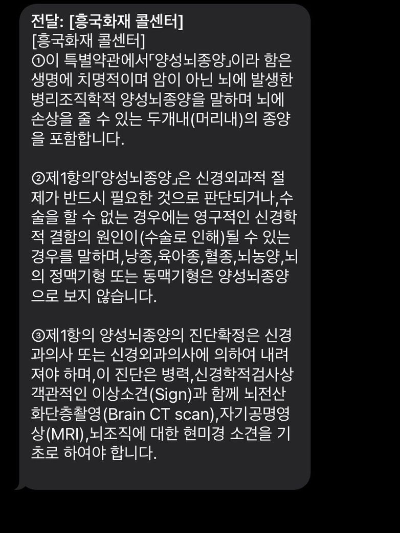 낭종,육아종,혈종,뇌농양,뇌의정맥기형은 양성 뇌종양에서 받지 못합니다.