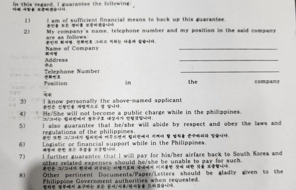 재정보증서에 서명한 보증인은 피보증인과 관련하여 발생하는 모든 비용을 지급할 책임을 지게 됩니다.