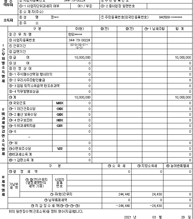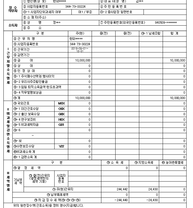 사진2~4 똑같은 곳에서 똑같은 일을 했는데, 명세서가 하나는 근로소득명세서로 나오고 하나는 거주자 사업소득으로 나오는데 이게 정상인건가요?