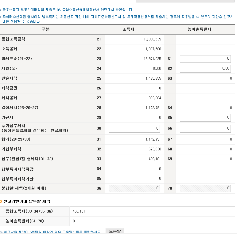 사진1. 18년도 종소세 기한 후 신고 도중 오히려 돈을 내야되는걸로 나오는 상황..