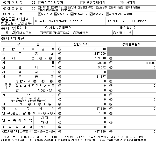 따라서 소득금액이 클 경우 추가납부세액이 발생하는 것도 충분히 있을 수 있는 상황이시며, 무신고하셨으므로 그 납부세액의 20%만큼 무신고가산세와, 당초납부기한으로부터 실제납부일까지의 기간에 비례한 납부불성실가산세도 추가로 납부하셔야 합니다.