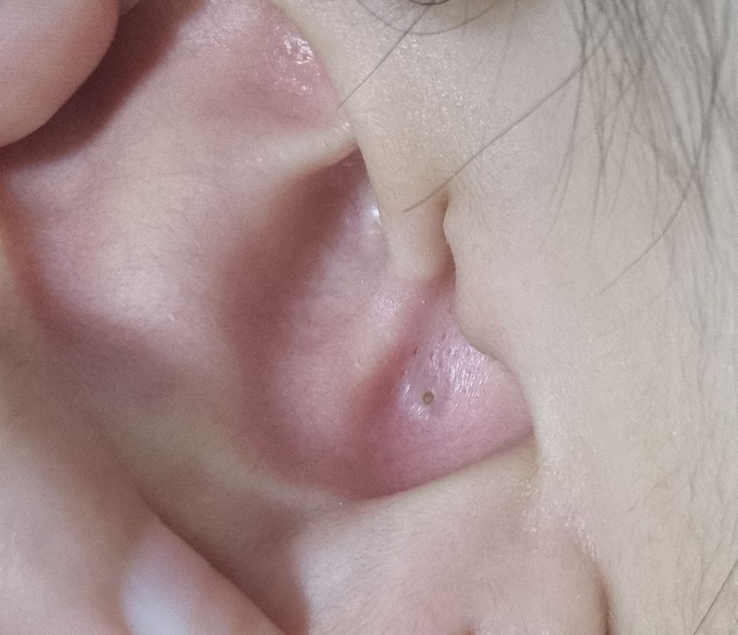 오늘 귀를 닦다가 따가워서 봤더니 저런게 있네요 만지면 아프고 살짝 볼록해요 이게 뭘까요ㅠ병원에 가봐야하나요????????