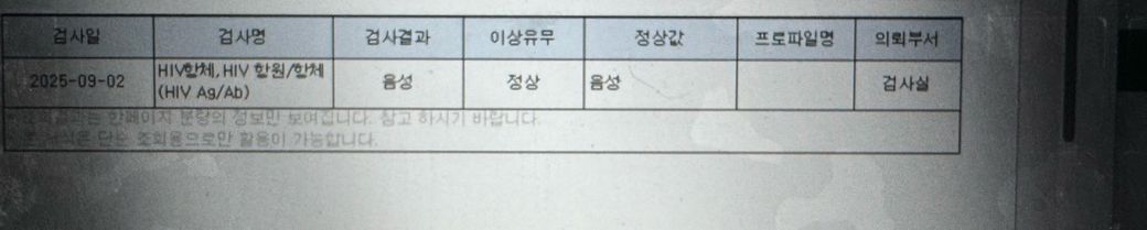 어제 에이즈 항원항체 검사 했는데 음성이면 정상인거죠?