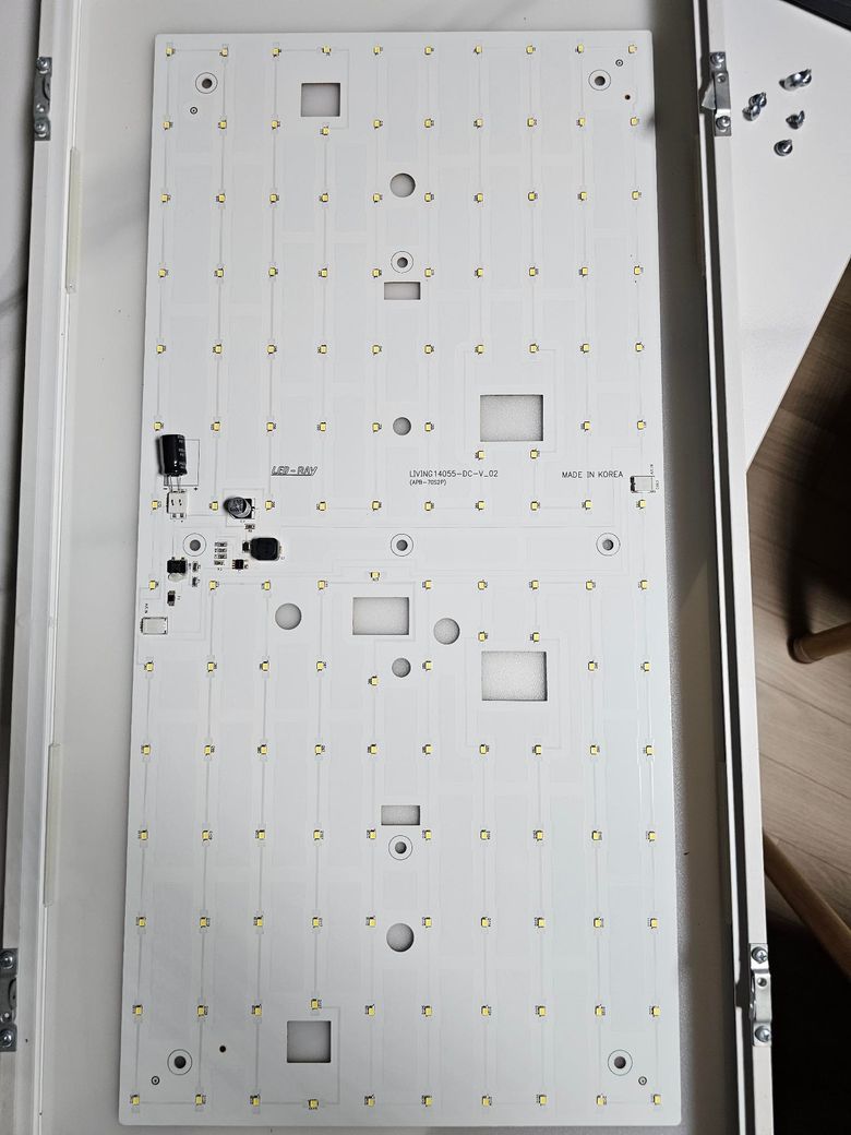 안녕하세요 led가 나갓다면 해당 패널을 인터넷으로 구매하시기 어렵습니다. 해당 기판 제조사에 연락하셔서 해당 기판을 받아 교체해야 합니다. led등 마다 안정기가 다르므로 정확히 몇와트를 구매하는것이 어려움이 있습니다 제조사에 연락하셔서 구매하시는것을 추천드려요~