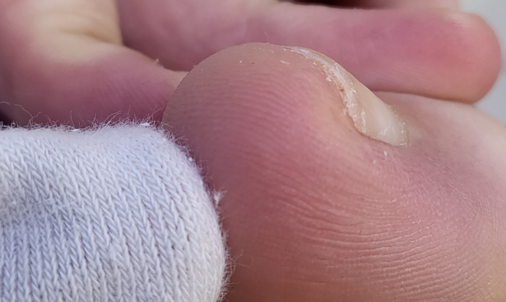사진상 확실하지 않으나, 발톱밑에 발생한 점상 출혈이나 사마귀의 가능성이 높습니다.