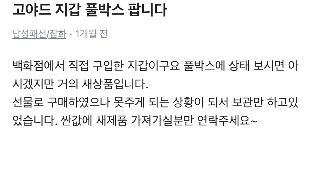 지갑을 팔았구요 저 말대로 사놓고 보관해두던 상태 였습니다 개봉을 했구요 구성품 사진도 전부 올렸구요