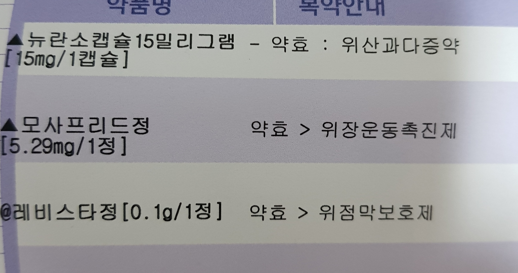 아침 저녁약에 포함된 라스토정과 점심약에 포함된 뉴란소캡슐은 모두 위산분비를 억제하는 약물입니다.