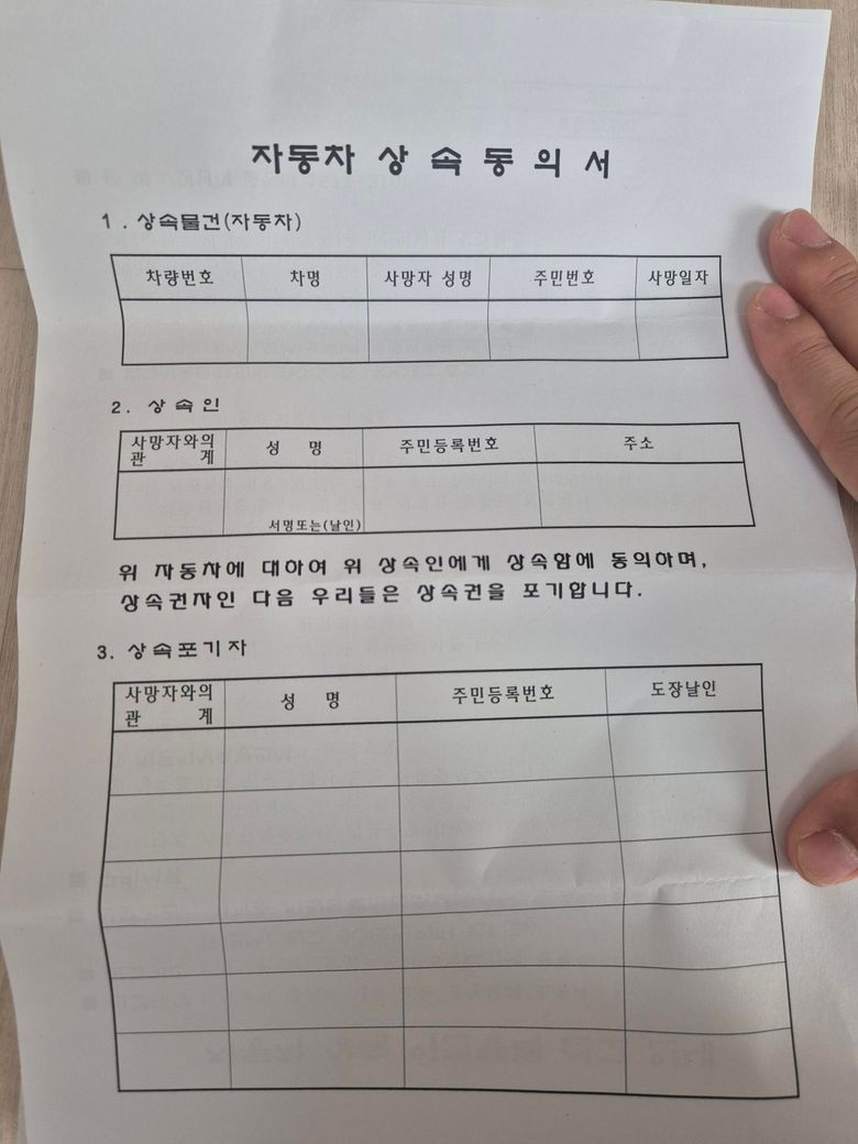 우편물받은 사망자명의 차량은 1대이고 저는 본적없는 자동차이고