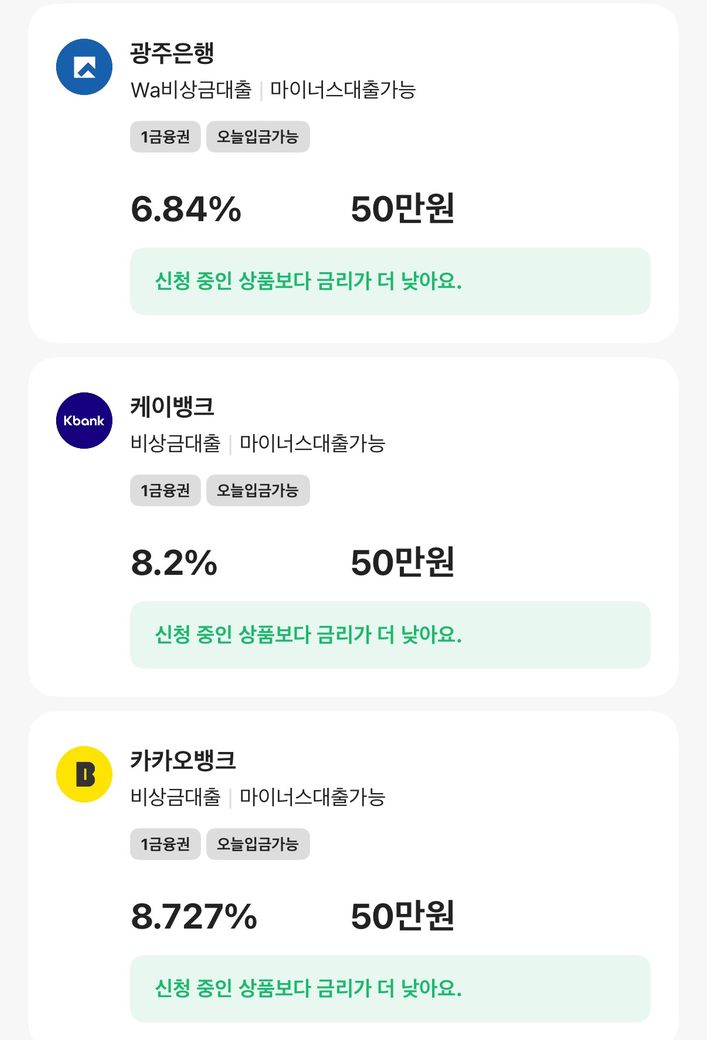 비상금대출 50짜리 3개 개설하기 vs 비상금대출 500짜리 개설 vs 카드론 현금서비스 리볼빙 등등하기