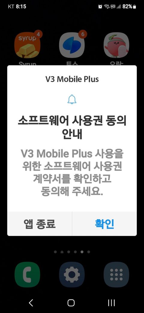 확인을 눌러주어야 백신 즉, 핸드폰 바이러스를 예방 할 수 있구요,