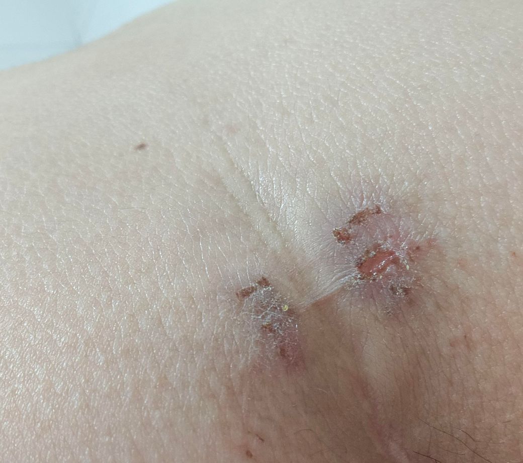 수영 엉덩이를 걸쳐서 발차기후 수포가 터진것 같은상처