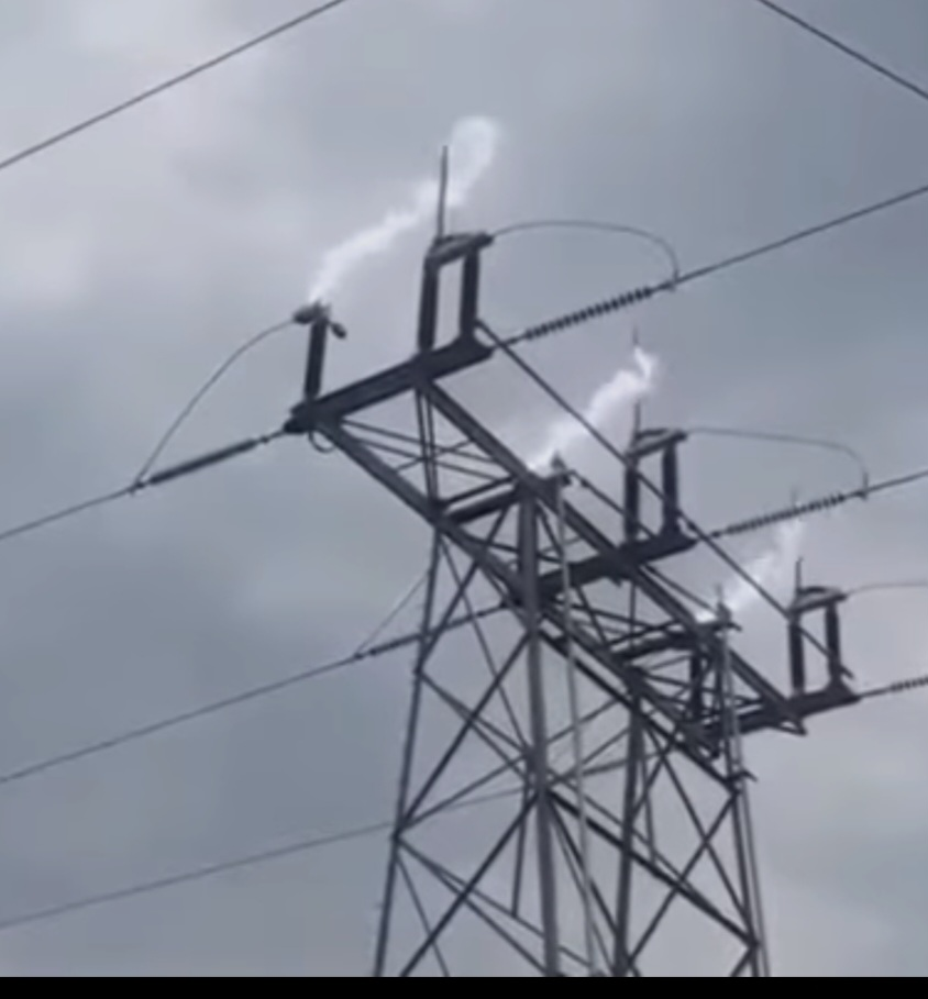 따라서 초고압송전에서 보이는 빛은 전선에서