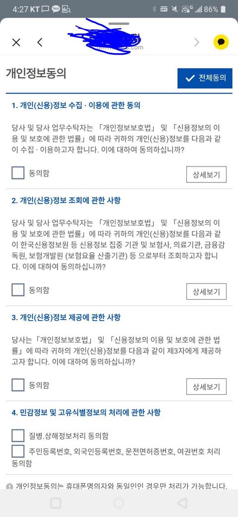 교통사고 후 개인정보 민감정보 동의를 해줘야 하나요?