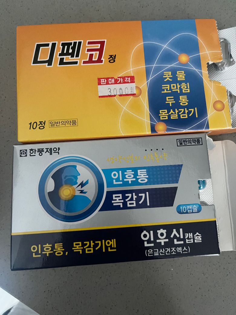 하나는 목감기약이고 하나는 코감기약인데 같이 먹어도 될까요? 둘 다 두알씩 먹으라고 되어잇는데 같이 먹을때믄 용량 어떻게 해야해요?