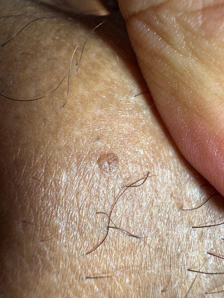 육안으로 관찰 시 곤지름보다는 모낭의 비후, 인그로운헤어 등의 가능성이 더 높을 것으로 보입니다.