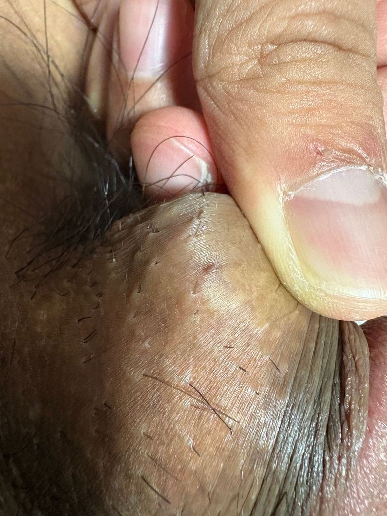 어제 씻다가 무심코 성기부분을 봤는데 털이 자라나는 모공이 어둡고 조금 튀어나온 부위가 세군데 정도 있더라구요...
