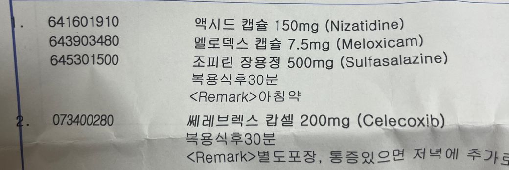 제가 강직성 척추염 약을 평소에 복용을 하고있었는데 이번에 목이 아파 병원에서 약을 처방 받았어요 근데 허리약을 일단 중단하면서 복용을 했는데 허리가 아파오는데 이약들 같이 먹어도 될까요?