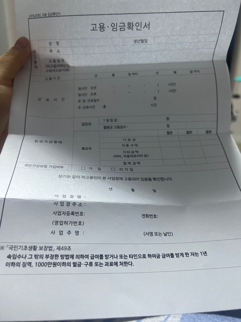 고용임금확인서를 받아오라고 하던데 ..이걸 사장님께서