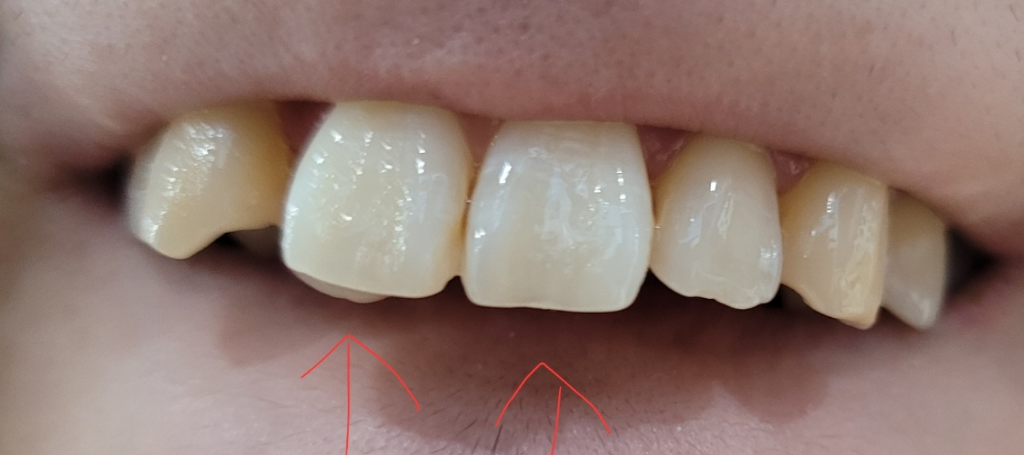앞니 두개 앞면이 혀로 건들면 좀 거칠거칠한게 느껴집니다.