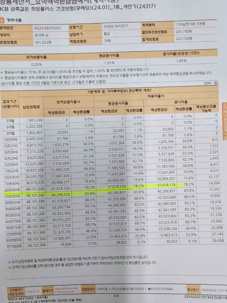 90세만기.20년납 비갱신형으로 담보내용이 알차게 설계되어 종합건강보험으로 잘 가입되어 있다고 생각합니다.