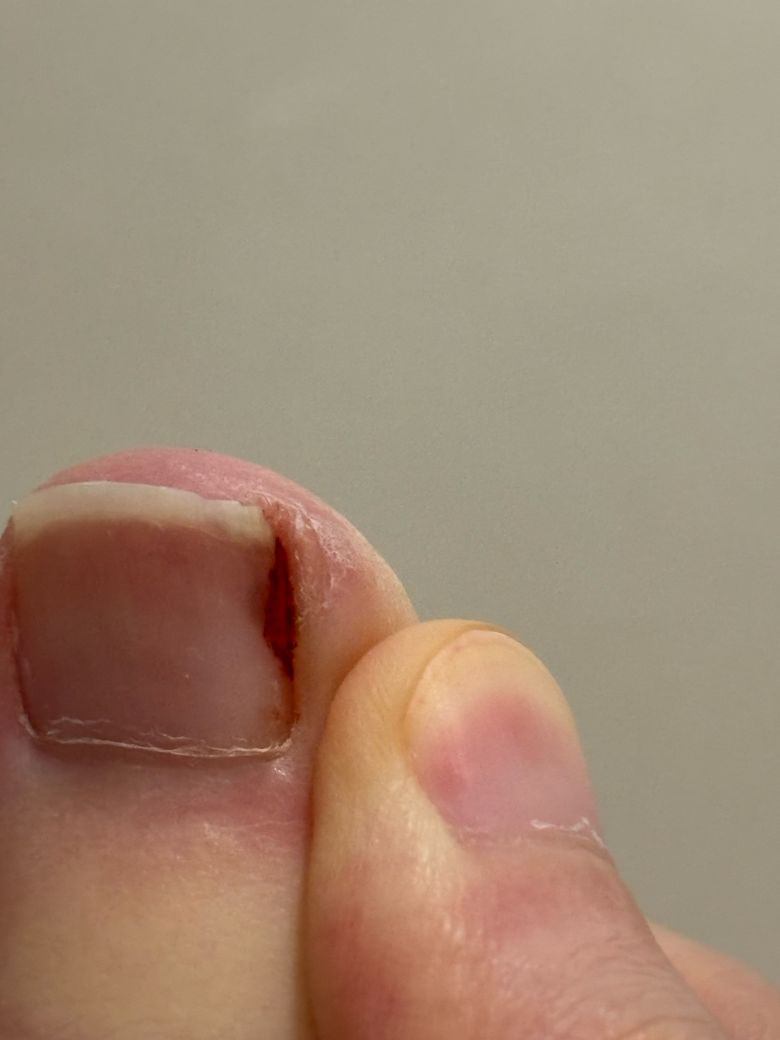 상태 자체는 양호해 보이며 소독해주고 연고를 발라주면 충분해 보입니다만, 증상을 유발한 원인이 될만한 내성발톱에 대해서는 치료를 고려해보아야 할 것으로 사료됩니다. 정형외과 진료 및 검진, 상담을 받아보시는 것이 적절하겠습니다.