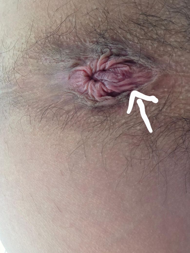 사진에서 보이는 항문 주위 피부는 약간 주름이 두드러지고 일부가 돌출된 형태입니다. 항문 주변은 원래 방사형 주름(anal folds)이 있고 개인마다 모양 차이가 있습니다. 다만 사진에서 화살표 부위처럼 피부가 늘어나 돌출된 형태는 흔히 다음 두 가지 경우에서 보입니다.