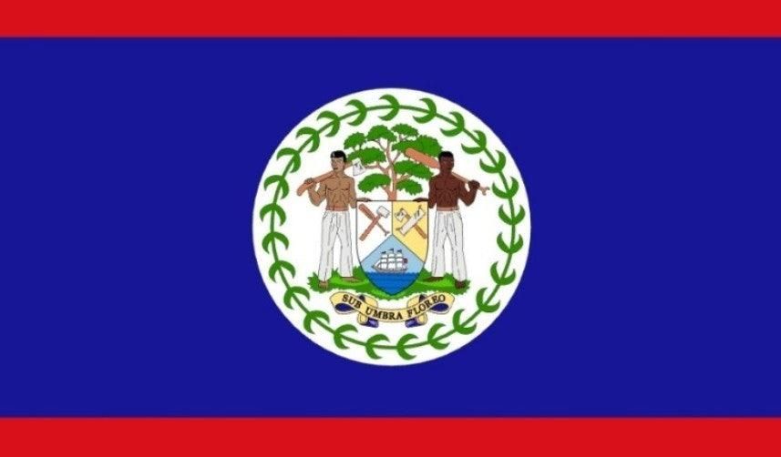 벨리즈는 중앙아메리카 유카탄 반도 남쪽에 위치한 독립국으로 북쪽은 멕시코, 서쪽은 과테말라와 국경을 하고 있습니다. 벨리즈 국기에 그려진 두 사람은 특정 인물이 아니라 벨리즈의 다양한 민족과 국민을 대표하는 일반적인 노동자로 왼쪽 인물은 도끼, 오른쪽 인물은 톱을 들고 있습니다. 이들은 벨리즈의 주요 산업인 목재 산업과 노동의 가치를 상징합니다.