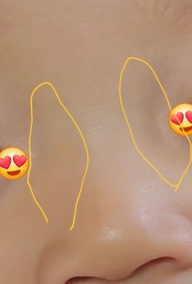 눈이랑 콧대 사이에 사진처럼 초록?파랑?색 보이는건