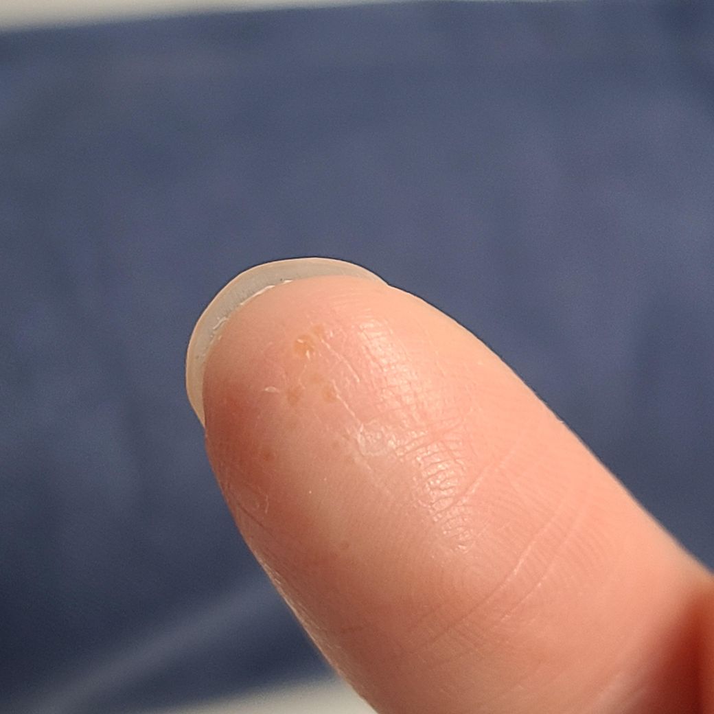 한포진 맞나요?? 간지러운 느낌은 없고 콕콕 쑤시는 느낌이 들어서보니까 수포가 올라왔어요 생겼다가 사라졌다가 반복하는데 한포진 맞나요?