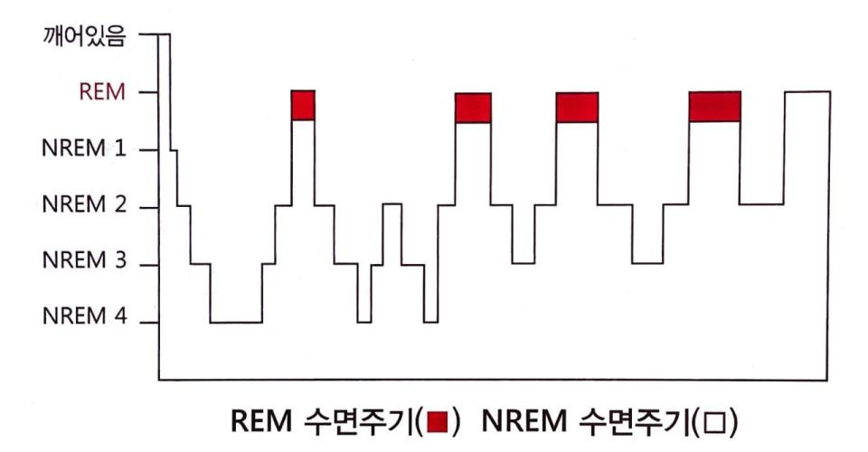 꿈은 아래 보시는 수면주기중에서 REM 수면기에 생기는 현상입니다.