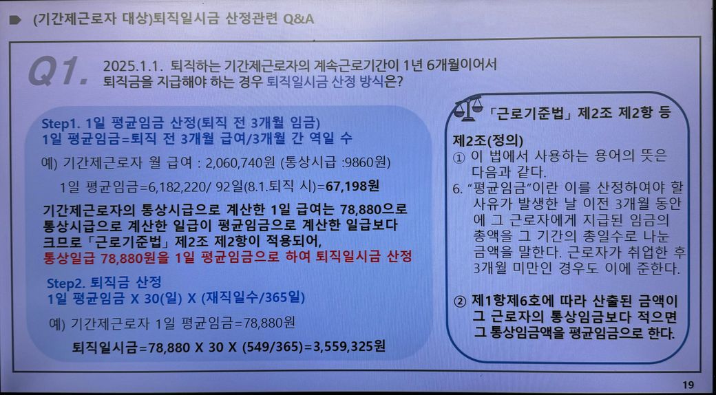 기간제 근로자 퇴직금 계산 1일 평균임금? 통상일급?