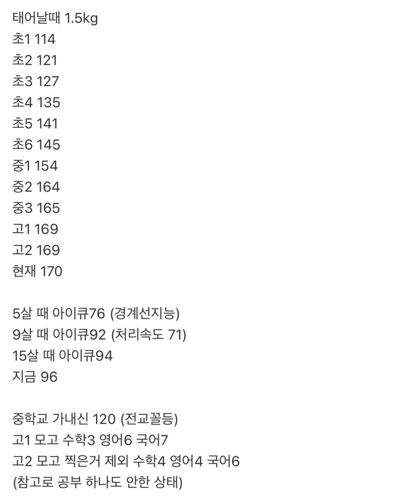 어렸을 때는 키, 공부, 지능 하위 1%였는데
