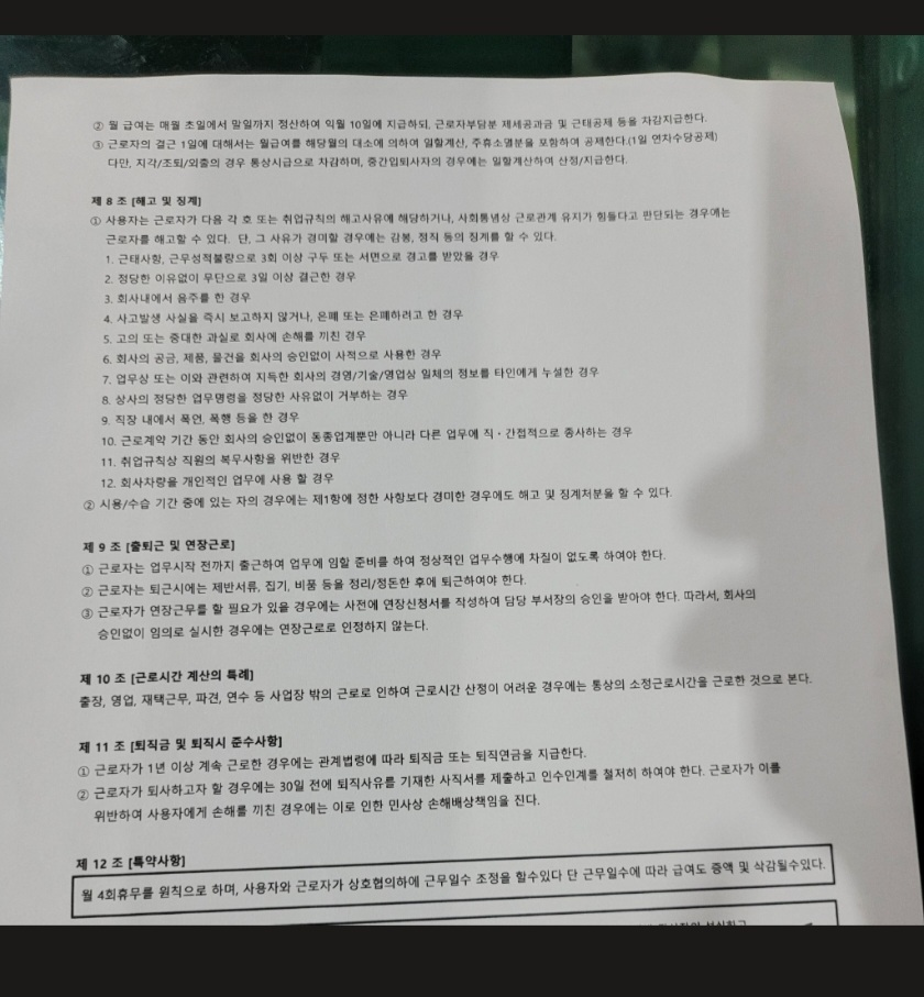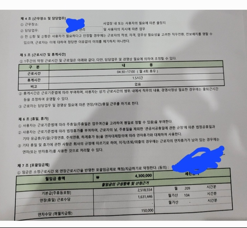 다만 해당 근로계약서에는 연장과 휴일, 연차수당이 기재되어 있습니다. 야간이 기재되어 있지 않으므로 야간근로수당은 계산에서 제외된 듯합니다. 야간근로수당은 간단하게 계산하시어 청구하실 수 있을 듯합니다.