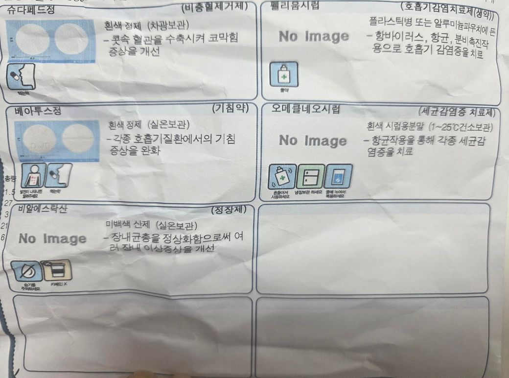 사진으로 첨부해주신 다섯 가지 처방약들은 모두 28개월인 소아 기준 복용할 수 있는 성분으로 구성된 약들입니다. 일반적으로 소아 감기약에 흔히 사용되는 성분들이기 때문에 안심하고 복용하셔도 괜찮습니다.