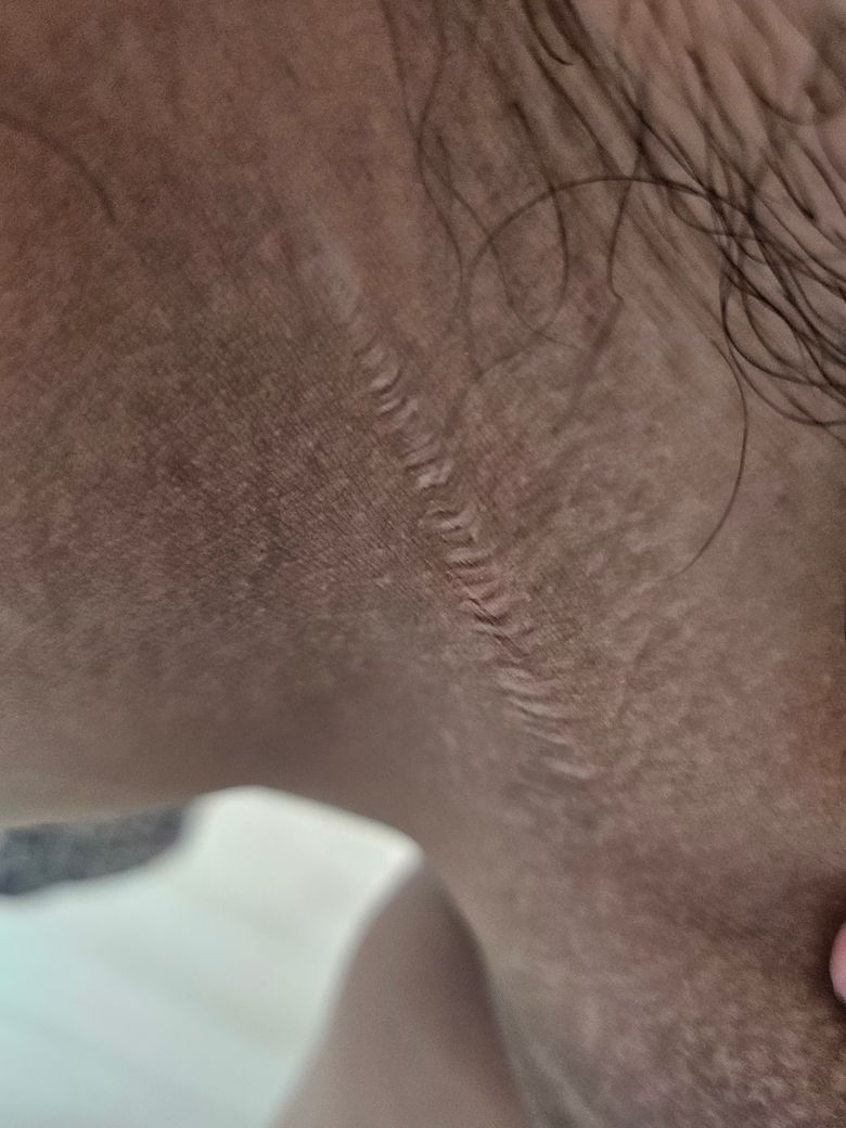 헤르페스는 수포 양상으로 나타나며 사진은 헤르페스 양상보다는 튼살에 가까워 보입니다.