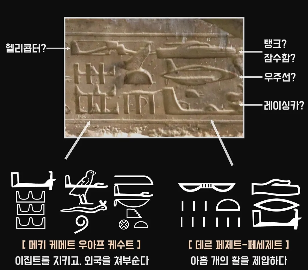 이집트 상형문자에 헬리콥터 잠수함이 새겨져있는 사진을 보았어요