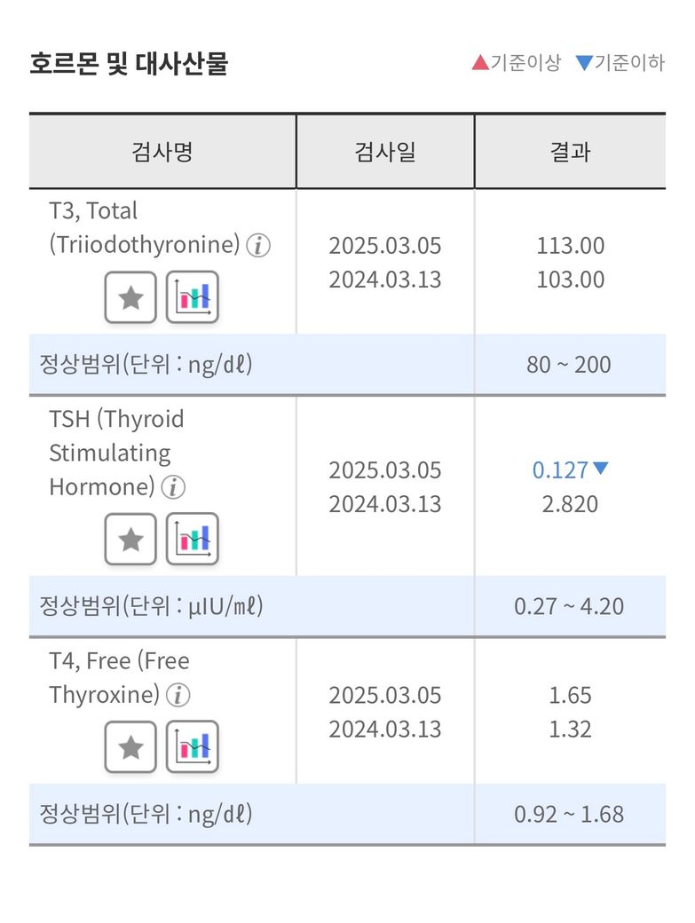 이번에 했던 검사에서 TSH 수치가 0.127로 나와서 의사분이 수치가 왜 낮아진건지 모르겠다고 이상하다고 하셨거든요