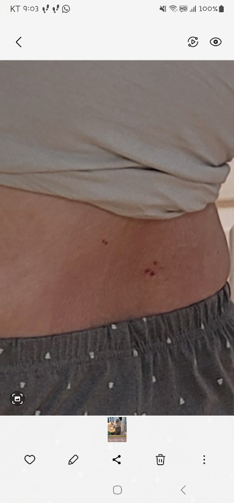 사진으로 보아 상처 부위는 붉고 부어 있으며, 가려움과 통증이 있는 것으로 보입니다.