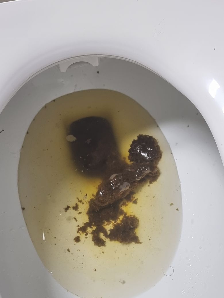 오늘 변을 보았는데 하나는 색이 정상적이고 물에 가라앉았는데 방금 색도 검고 물에 떠서 질문드립니다