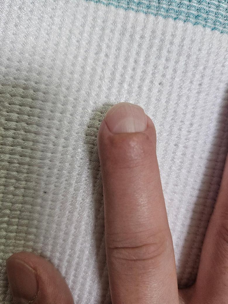 문제는 하루하루가 지날때마다 욱신거림이 심해지고 쿡쿡 쑤시거나 손톱이 전반적으로 누르면 약한통증이 있고, 부어서 첫번째 마디가 잘 안접힙니다.