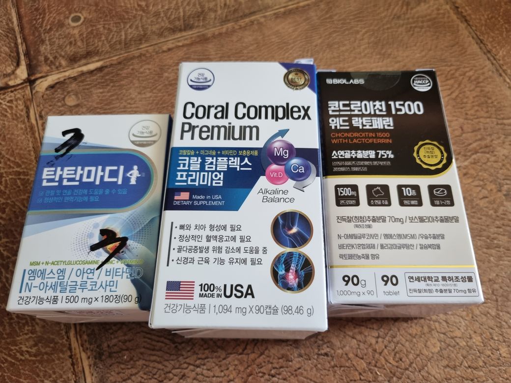 약국에서 관절 영양제를 3가지를 추천 받으셨다고 합니다.