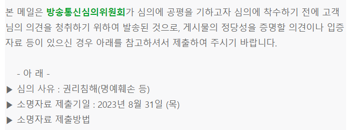 일단 30일 이후에 재게시가 될 예정으로 보이고 위의 앞선 이의를 그대로 소명하셔도 될 것으로 보입니다.