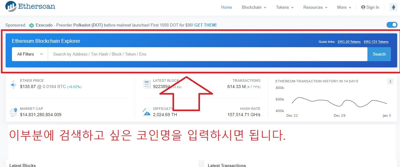 https://etherscan.io/ 접속을 하면 아래 보이는 화면이 나옵니다.